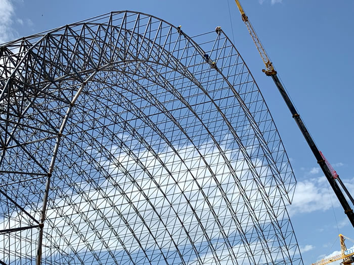 (2)网架加工前应对现场尺寸进行复测,确认无误后方可进行加工、安装;网架制作、运输、安装应遵守《空间网格结构技术规程》JGJ7-2010、《钢网架个旧螺栓球节点》JG/T 10-2009、《钢网架个旧螺栓球节点用高强度螺栓》 GB/T 16939-2016、《个旧钢结构个旧工程个旧施工规范》 GB50755-2012、《个旧钢结构个旧工程施工质量验收标准》 GB50205-2020。